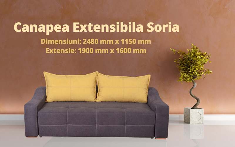 1. Canapea extensibila SORIA, cu un grad ridicat de confort datorat noii structuri de arcuri sinusoidale, cu lada pentru depozitare, formata din: